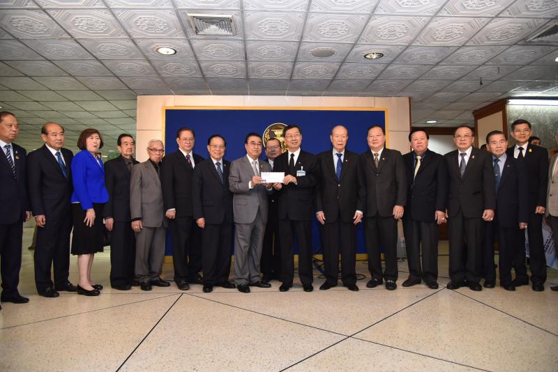 นายสุรชัย เลี้ยงบุญเลิศชัย รองประธาน สนช. คนที่หนึ่ง รับมอบเงินบริจาคช่วยผู้ประสบภัยน้ำท่วม