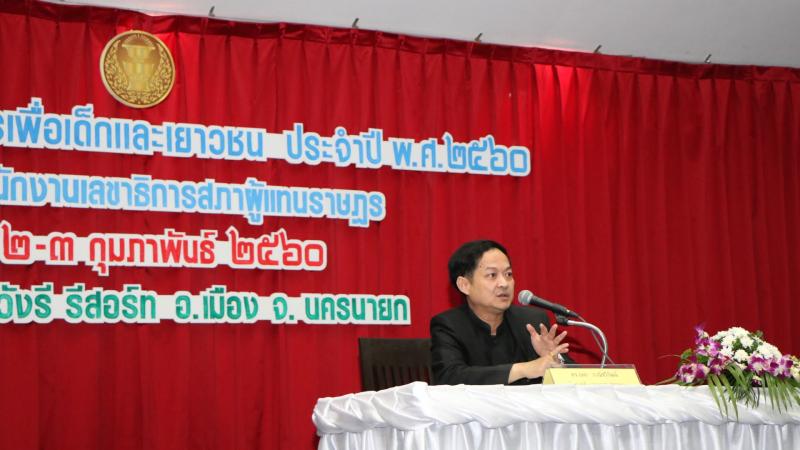 | วันพฤหัสบดีที่ ๒ กุมภาพันธ์ ๒๕๖๐ เวลา ๐๙.๓๐ นาฬิกา ณ โรงแรมวังรี รีสอร์ท จังหวัดนครนายก นายชาญวิทย์ ผลชีวิน สมาชิกสภาขับเคลื่อนการปฏิรูปประเทศ เป็นประธานในพิธีเปิดโครงการรัฐสภาสัญจรเพื่อเด็กและเยาวชน ประจำปี ๒๕๖๐ และบรรยายพิเศษหัวข้อ รัฐสภาไทยใต้ร่มพระบารมี เพื่อเป็นการน้อมรำลึกในพระมหากรุณาธิคุณอย่างหาที่สุดมิได้ของพระบาทสมเด็จพระปรมินทรมหาภูมิพลอดุลยเดช โดยมีนายประวิช ตั้งใจมั่น ที่ปรึกษาด้านระบบงานนิติบัญญัติ กล่าวรายงานทั้งนี้ โครงการรัฐสภาสัญจรเพื่อเด็กและเยาวชน เป็นโครงการที่สำนักงานเลขาธิการสภาผู้แทนราษฎรได้จัดขึ้นในภูมิภาคต่าง ๆ โดยมีวัตถุประสงค์เพื่อส่งเสริมและเผยแพร่ความรู้ความเข้าใจเกี่ยวกับสิทธิ เสรีภาพ และความรับผิดชอบของพลเมืองในระบอบประชาธิปไตย ตลอดจนการมีส่วนร่วมของเยาวชนในการปฏิรูปประเทศ ซึ่งมีกลุ่มเป้าหมายเป็นเยาวชนที่กำลังศึกษาในระดับมัธยมศึกษาตอนปลายของโรงเรียนในสังกัดสำนักงานเขตพื้นที่การศึกษามัธยมศึกษา โดยมีสมาชิกสภาขับเคลื่อนการปฏิรูปประเทศ คณะกรรมการร่างรัฐธรรมนูญ และนักวิชาการ เป็นวิทยากรสำหรับการจัดในภาคกลางในครั้งนี้ สำนักงานเขตพื้นที่การศึกษามัธยมศึกษา เขต ๗ (จังหวัดนครนายก) ได้จัดนักเรียนจากโรงเรียนในสังกัดจำนวน ๑๑ โรงเรียน รวมทั้งสิ้น ๒๐๐ คน เข้าร่วมกิจกรรม |
