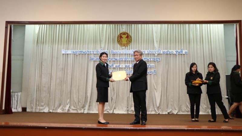 เกียรติบัตรแก่ยุวชนประชาธิปไตย ซึ่งผ่านการอบรมกิจกรรมยุวชนประชาธิปไตย สัมมนาเชิงปฏิบัติการ ประจำปี ๒๕๖๐