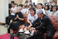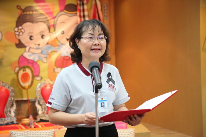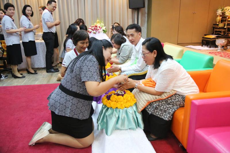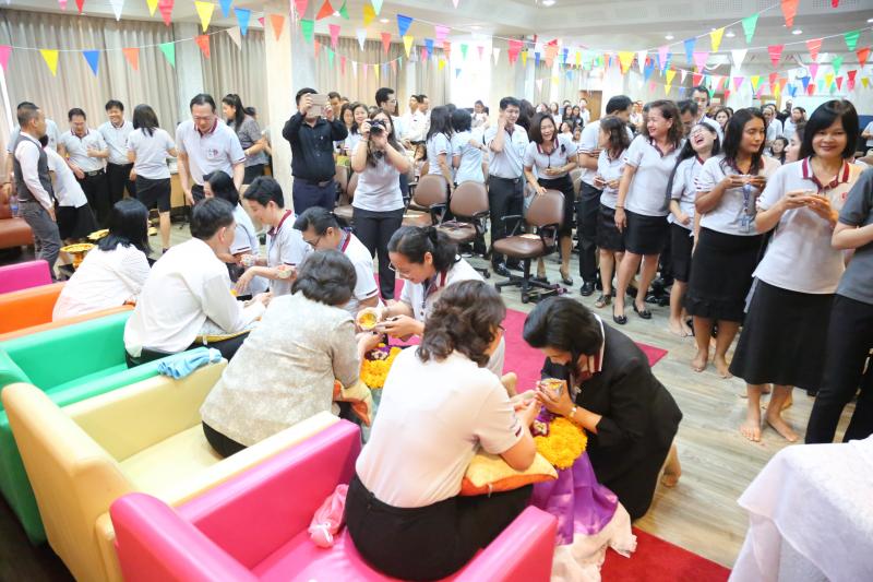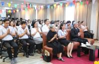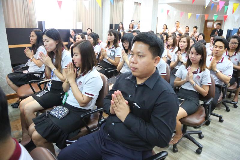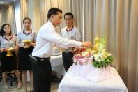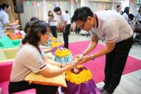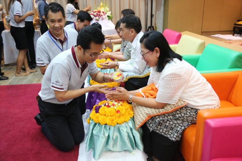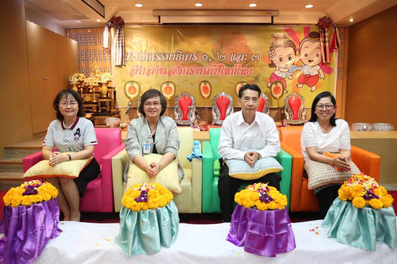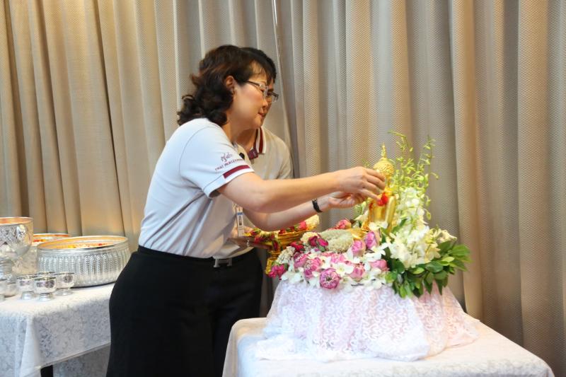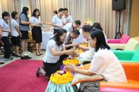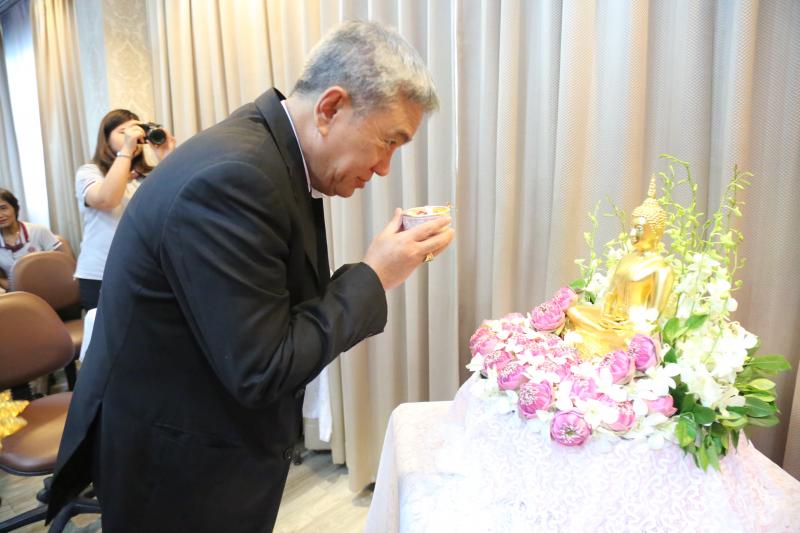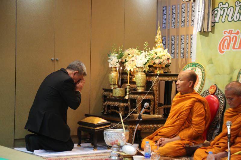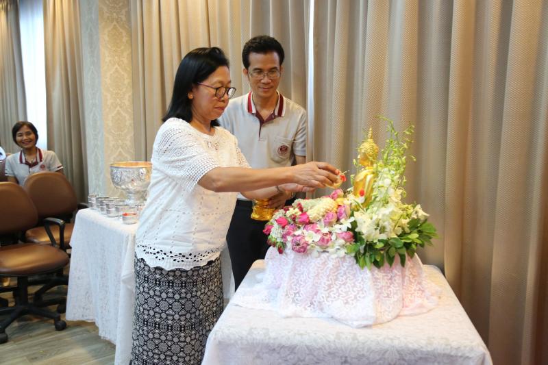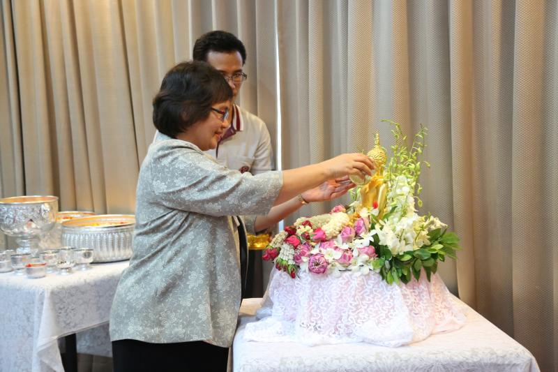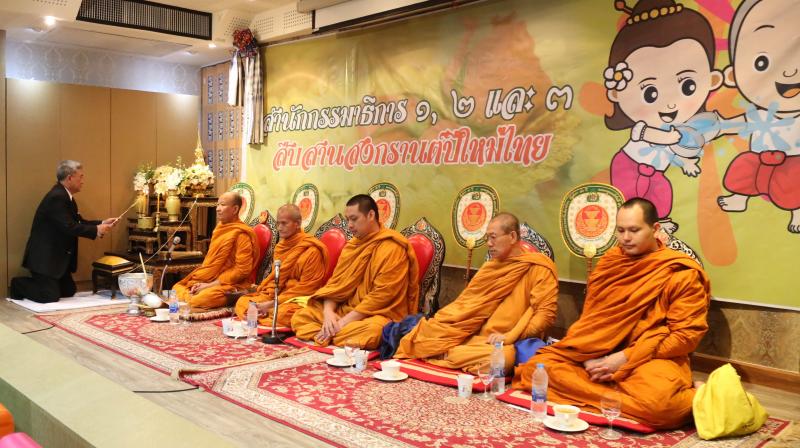 พิธีจุดธูปเทียนบูชาพระรัตนตรัย และถวายสังฆทาน พร้อมเครื่องไทยธรรมแด่พระสงฆ์ ในกิจกรรม “ทำบุญสงกรานต์ชุ่มฉ่ำ รดน้ำดำหัวข้าราชการผู้อาวุโส”