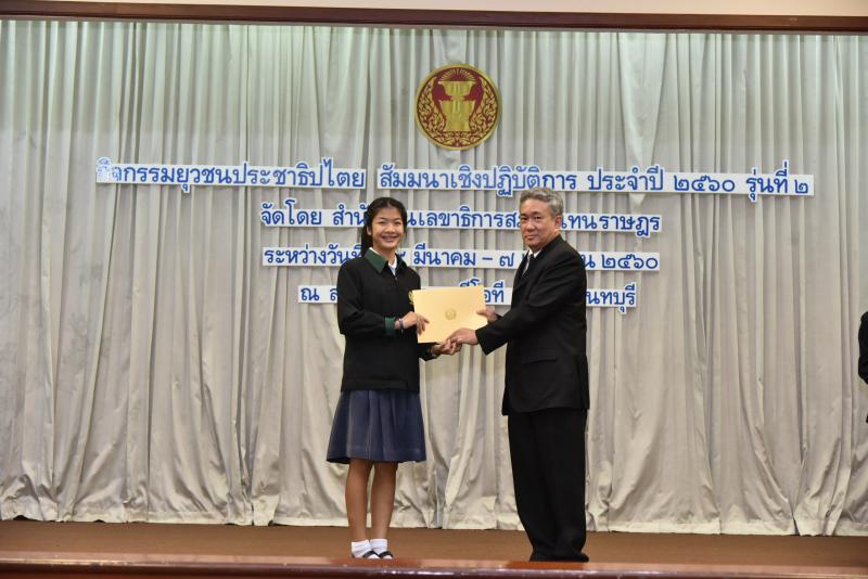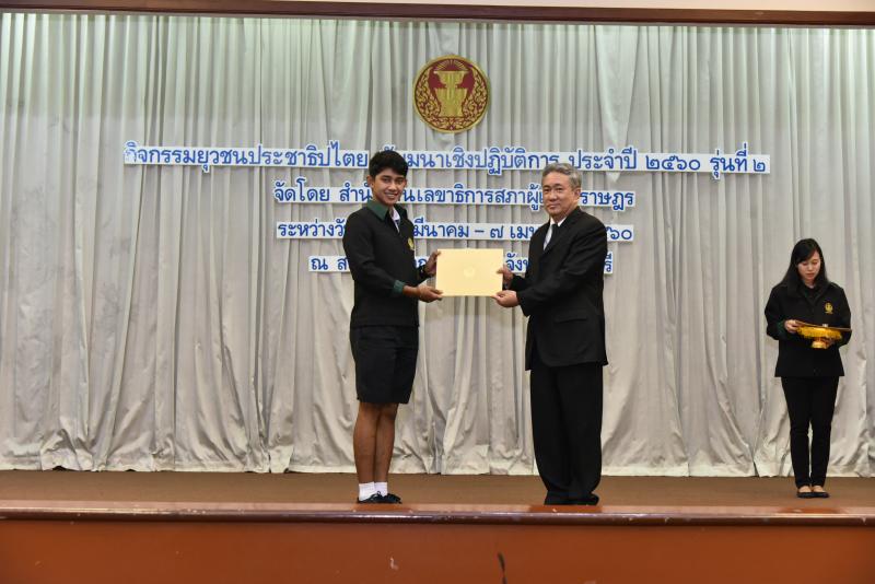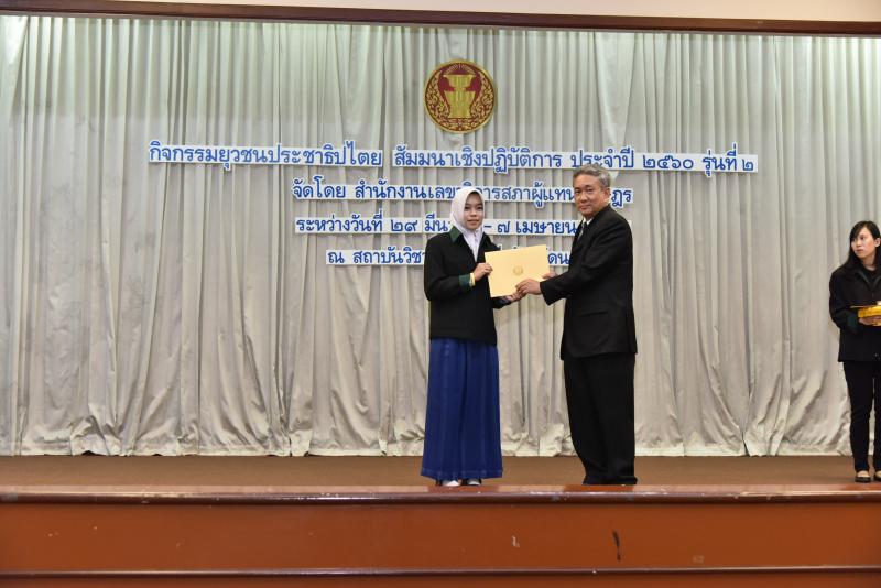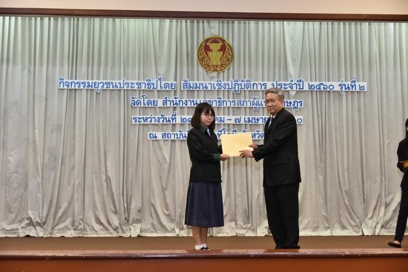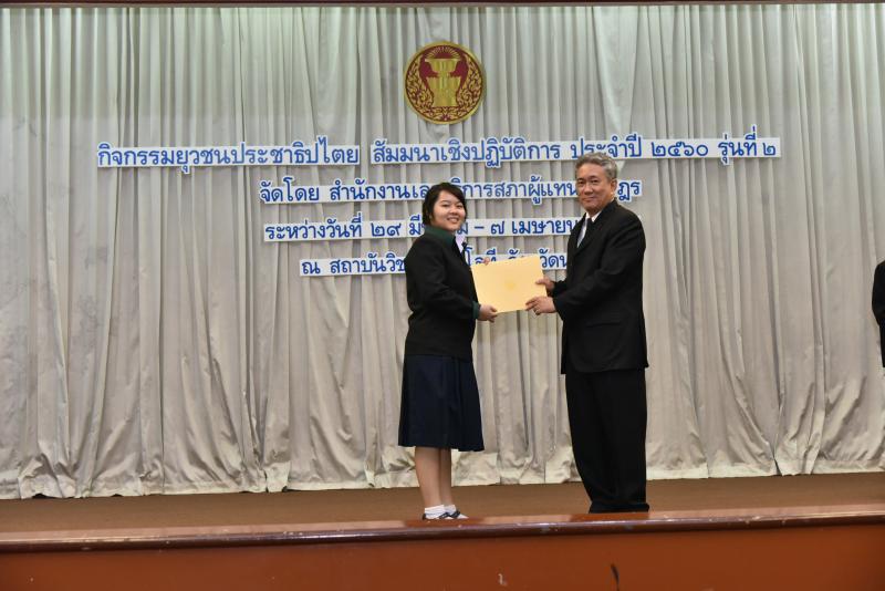 พิธีปิดกิจกรรมยุวชนประชาธิปไตย สัมมนาเชิงปฏิบัติการ ประจำปี พ.ศ. ๒๕๖๐ รุ่นที่ ๒ และมอบเกียรติบัตร พร้อมเข็มยุวชนประชาธิปไตย