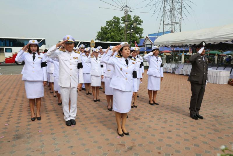 นางจันทร์เพ็ญ อานามวัฒน์ ที่ปรึกษาด้านระบบงานนิติบัญญัติ นำข้าราชการร่วมพิธีวางพวงมาลาถวายราชสักการะ