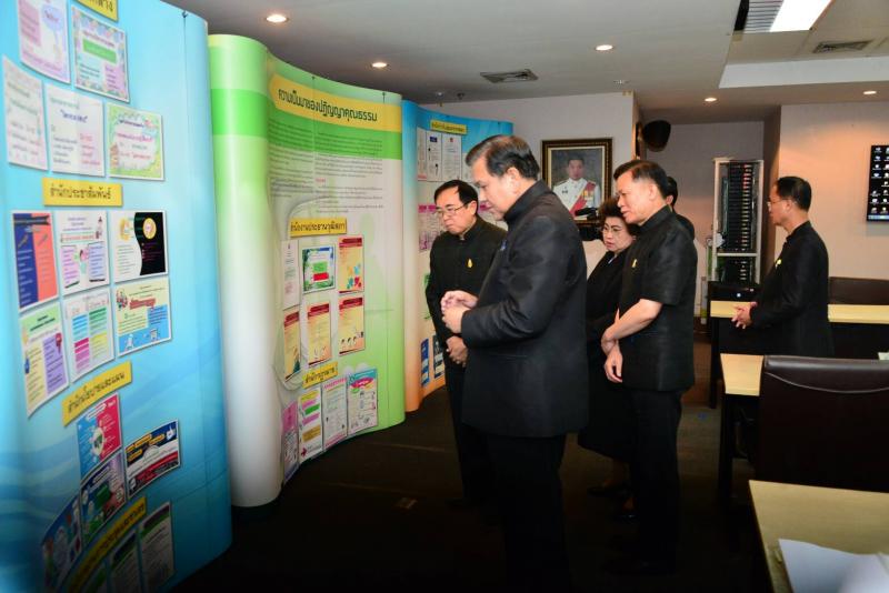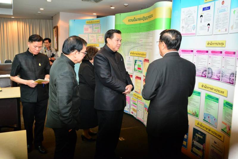 | วันศุกร์ที่ ๓๐ มิถุนายน ๒๕๖๐ เวลา ๐๙.๓๐ นาฬิกา ณ ห้องประชุม ๑ ชั้น ๑๙ กระทรวงวัฒนธรรม นายสรศักดิ์ เพียรเวช เลขาธิการสภาผู้แทนราษฎร ไปร่วมประชุมคณะกรรมการส่งเสริมคุณธรรมแห่งชาติ ครั้งที่ ๓/๒๕๖๐ โดยมี พลเอก ธนะศักดิ์ ปฏิมาประกร รองนายกรัฐมนตรีเป็นประธานการประชุม เพื่อติดตามความก้าวหน้าการดำเนินงานขับเคลื่อนแผนแม่บทส่งเสริมคุณธรรมแห่งชาติ ฉบับที่ ๑ (พ.ศ. ๒๕๕๙ ๒๕๖๔) และการดำเนินงานอื่นที่เกี่ยวข้องภายใต้คณะกรรมการส่งเสริมคุณธรรมแห่งชาติ ซึ่งเลขาธิการสภาผู้แทนราษฎร ได้นำเสนอความก้าวหน้าการดำเนินงานขับเคลื่อนแผนแม่บทส่งเสริมคุณธรรมแห่งชาติ ของส่วนราชการสังกัดรัฐสภา ในการนี้ รองนายกรัฐมนตรี ได้เยี่ยมชมการจัดแสดงปฏิญญาของส่วนราชการสังกัดรัฐสภา โดยมี พลอากาศเอก วีรวิท คงศักดิ์ ที่ปรึกษาหลักสูตร ก.ร. พาเยี่ยมชม |