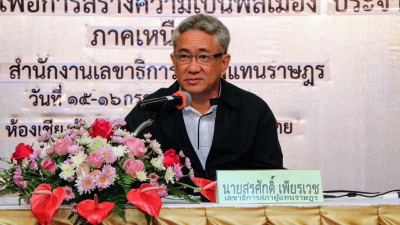 วันเสาร์ที่ ๑๕ กรกฎาคม ๒๕๖๐ เวลา ๐๙.๐๐ นาฬิกา ณ โรงแรมเวียงอินทร์ จังหวัดเชียงราย นายสรศักดิ์ เพียรเวช เลขาธิการสภาผู้แทนราษฎร กล่าวต้อนรับผู้เข้าร่วมกิจกรรมรวมรุ่นยุวชนเพื่อสร้างความเป็นพลเมือง ภาคเหนือ ประจำปี ๒๕๖๐ ในโครงการส่งเสริมและสนับสนุนความเป็นพลเมืองของเยาวชนในระบอบประชาธิปไตยเพื่อพัฒนาประชาธิปไตยให้ยั่งยืนและในเวลา ๑๗.๐๐ นาฬิกา ณ ลานรำวงย้อนยุค ถนนคนเดิน สวนตุงและโคม นครเชียงราย จังหวัดเชียงราย นายสรศักดิ์ เพียรเวช เลขาธิการสภาผู้แทนราษฎร เป็นประธานในพิธีเปิดกิจกรรมเทิดพระเกียรติพระบาทสมเด็จพระปรมินทรมหาภูมิพลอดุลยเดช และกิจกรรมเสวนา เรื่อง สาระสำคัญของรัฐธรรมนูญ ปี ๒๕๖๐ โดยมีนางสาวขวัญเรือน สังข์ประไพ ผู้บังคับบัญชากลุ่มงานเผยแพร่ประชาธิปไตยและกิจกรรมสภาผู้แทนราษฎร กล่าวรายงาน ในการนี้ นายบุญเวทย์ ศรีพวงใจ รองผู้ว่าราชการจังหวัดเชียงราย ได้กล่าวต้อนรับจากนั้น เป็นการเสวนาเรื่อง สาระสำคัญของรัฐธรรมนูญ ปี ๒๕๖๐ โดยนายอภิชาต สุขัคคานนท์ รองประธานกรรมการร่างรัฐธรรมนูญ คนที่สอง นายธีระวัฒน์ สงวนพงษ์ ผู้อำนวยการสำนักการศึกษา เทศบาลนครเชียงราย นางฐิตาภา สุเดชมารค เลขานุการคณะกรรมการพัฒนาสตรี ๑๗ จังหวัดภาคเหนือ (ผู้แทนภาคประชาชน)นายดอยธิเบศร์ ดัชนีบุคคลตัวอย่างของเชียงรายด้านการส่งเสริมศิลปะและวัฒนธรรม และนายเจริญพงศ์ คำมีสว่าง หัวหน้าฝ่ายรายการ สถานีวิทยุกระจายเสียงแห่งประเทศไทยจังหวัดเชียงราย เป็นผู้ดำเนินรายการสำหรับกิจกรรมดังกล่าว จัดขึ้นโดยมีวัตถุประสงค์เพื่อน้อมรำลึกในพระมหากรุณาธิคุณ อันหาที่สุดมิได้ของ พระบาทสมเด็จพระปรมินทรมหาภูมิพลอดุลยเดช ซึ่งมีกิจกรรมต่าง ๆ ประกอบด้วยการกล่าวเทิดพระเกียรติฯ การแสดงเทิดพระเกียรติฯ โดยยุวชนประชาธิปไตย การแสดงศิลปวัฒนธรรม ๔ ภาค เทิดพระเกียรติฯ โดยตัวแทนยุวชนประชาธิปไตยของแต่ละภาค การทำดอกไม้จันทน์ สำหรับพระราชพิธีถวายพระเพลิงพระบรมศพ และการจัดแสดงนิทรรศการเทิดพระเกียรติพระบาทสมเด็จพระปรมินทรมหาภูมิพลอดุลยเดช |