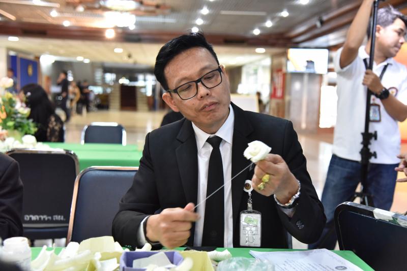 ประดิษฐ์ดอกไม้จันทน์ ตามโครงการจิตอาสาประดิษฐ์ดอกไม้จันทน์ สำหรับพระราชพิธีถวายพระเพลิง