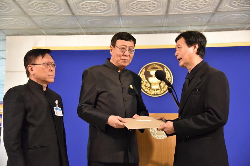 ศาสตราจารย์พิเศษพรเพชร วิชิตชลชัย ประธานสภานิติบัญญัติแห่งชาติ รับหนังสือจากผู้ช่วยศาสตราจารย์
