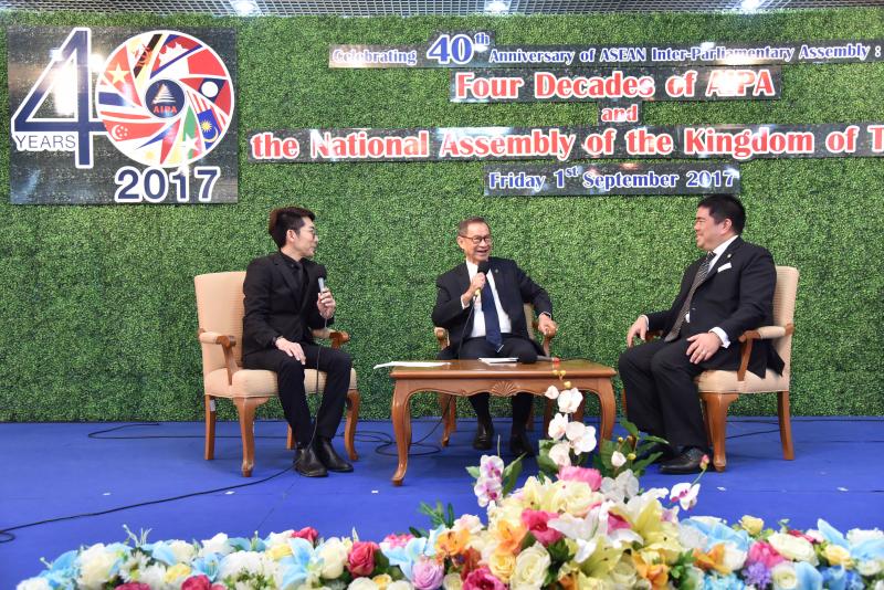 จากนั้นเวลา ๑๑.๐๐ นาฬิกา มีการเสวนา หัวข้อ “สี่ทศวรรษของสมัชชารัฐสภาอาเซียนกับรัฐสภาไทย” โดยมี