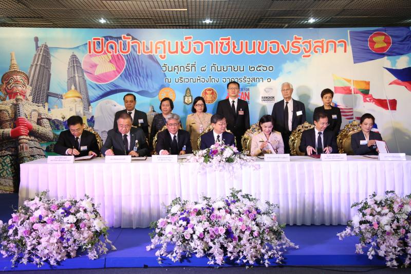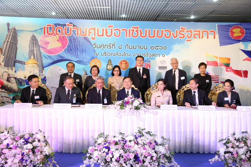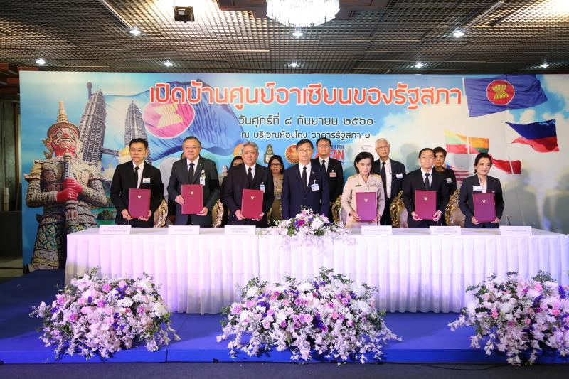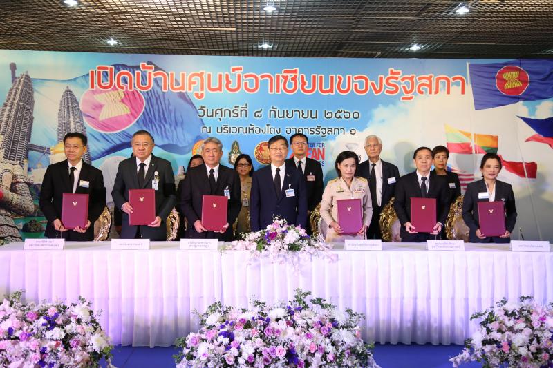 พิธีลงนามบันทึกข้อตกลงความร่วมมือด้านประชาคมอาเซียน ระหว่างสำนักงานเลขาธิการสภาผู้แทนราษฎร สำนักงานเลขาธิการวุฒิสภา กับหน่วยงานเครือข่ายด้านประชาคมอาเซียน