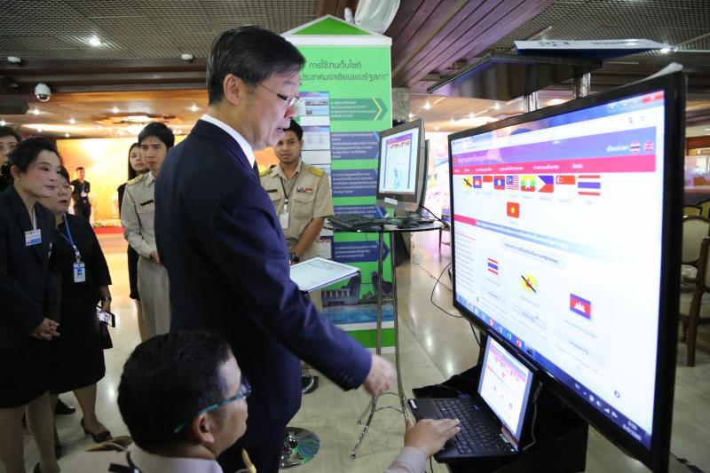 จากนั้นรองประธานสภานิติบัญญัติแห่งชาติ คนที่หนึ่ง ได้ร่วมเยี่ยมชมบูธเว็บไซต์ศูนย์ประชาคมอาเซียนของรัฐสภา www.parliament.go.thและข้อมูลกฎหมายในกลุ่มประเทศอาเซียน