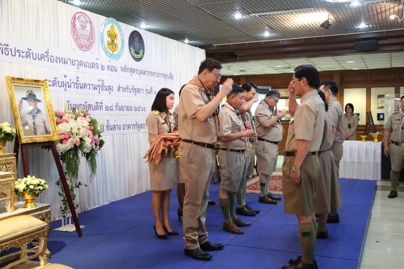พิธีประดับเครื่องหมายวูดแบดจ์ ๒ ท่อน หลักสูตรบุคลากรทางการลูกเสือ ระดับผู้นำขั้นความรู้ชั้นสูง สำหรับรัฐสภา รุ่นที่ ๑