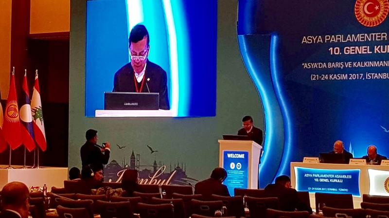 เมื่อวันพุธที่ ๒๒ พฤศจิกายน ๒๕๖๐ เวลา ๐๙.๐๐ นาฬิกา (เวลาท้องถิ่น) พลเอก นิพัทธ์ ทองเล็ก หัวหน้าคณะผู้แทนสภานิติบัญญัติแห่งชาติในสมัชชารัฐสภาเอเชีย พร้อมด้วยสมาชิกสภานิติบัญญัติแห่งชาติ ได้แก่ นางสุวรรณี สิริเวชชะพันธ์ และพลอากาศเอก ชูชาติ บุญชัย ได้เข้าร่วมการประชุมใหญ่สมัชชารัฐสภาเอเชีย ภายใต้หัวข้อ "สันติภาพและการพัฒนาที่ยั่งยืนในภูมิภาคเอเชีย" ซึ่งสมาชิกจากหลายประเทศ อาทิ จีน อินเดีย ซาอุดิอาระเบีย บาห์เรน อินโดนีเซีย กัมพูชา ฯลฯ ได้กล่าวถ้อยแถลงซึ่งเน้นย้ำถึงการสร้างความร่วมมือในการแก้ไขปัญหา ก่อการร้าย ยาเสพติด และการละเมิดสิทธิมนุษยชน เนื่องจากปัญหาดังกล่าวล้วนเป็นอุปสรรคต่อการสร้างสันติภาพและการพัฒนาที่ยั่งยืนต่อโลกในสภาวการณ์ปัจจุบัน