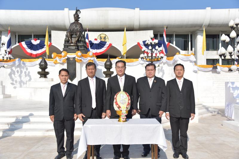 งานพระราชพิธีฉลองวันพระราชทานรัฐธรรมนูญแห่งราชอาณาจักรไทย นายนิกร จำนง ผู้อำนวยการพรรคชาติไทยพัฒนาและคณะ นำพานประดับพุ่มดอกไม้ถวายบังคมพระบรมราชานุสาวรีย์พระบาทสมเด็จพระปกเกล้าเจ้าอยู่หัว ในนาม พรรคชาติไทยพัฒนา