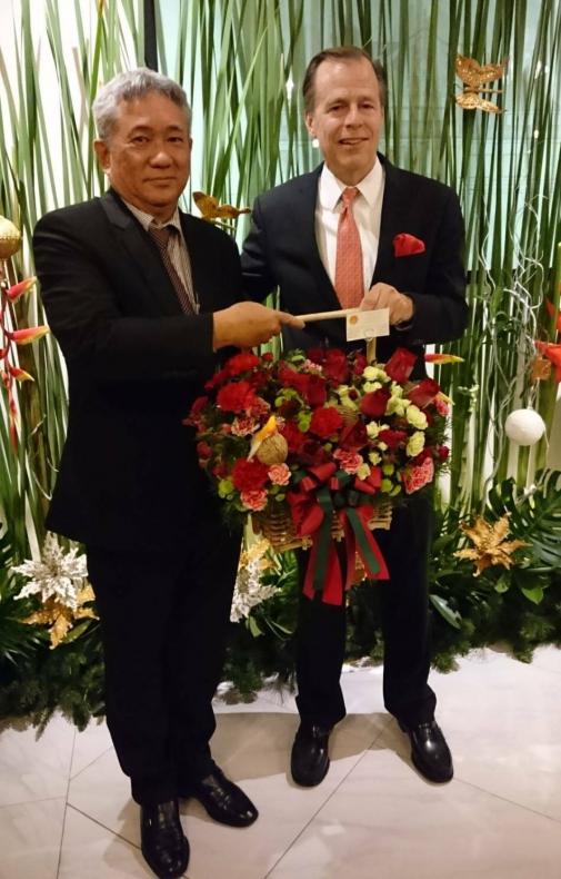 เลขาธิการสภาผู้แทนราษฎร มอบกระเช้าดอกไม้ให้กับ H.E. Mr. Glyn T. Davies เอกอัครราชทูตสหรัฐอเมริกาประจำประเทศไทย