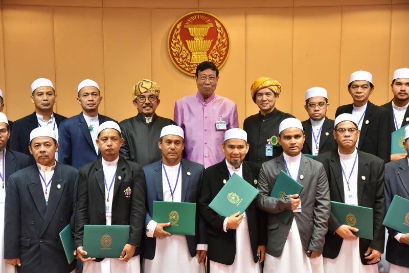 ผู้อำนวยการสำนักจุฬาราชมนตรี นายประสาน ศรีเจริญ รองประธานผู้ทรงคุณวุฒิจุฬาราชมนตรี และคณะ