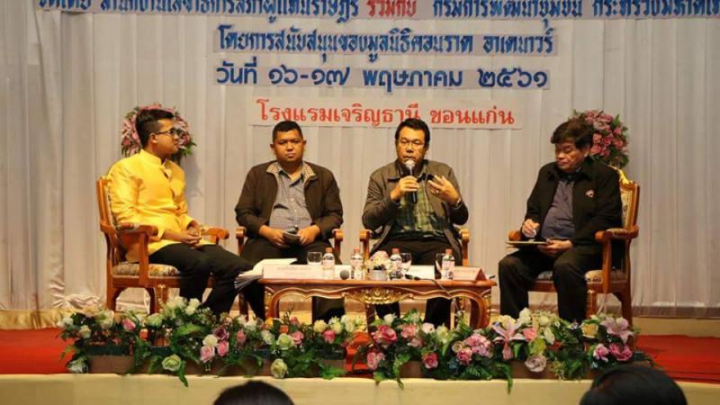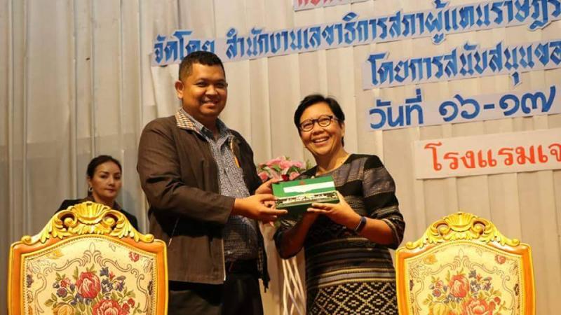 จากนั้นเป็นการเสวนา เรื่อง การมีส่วนร่วมของประชาชนในการตรากฎหมาย โดย นายศักดิ์ดา ภารา