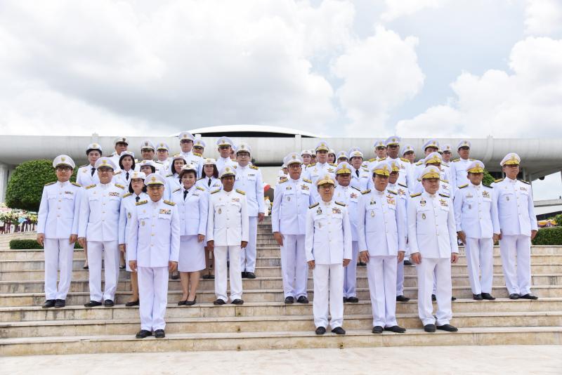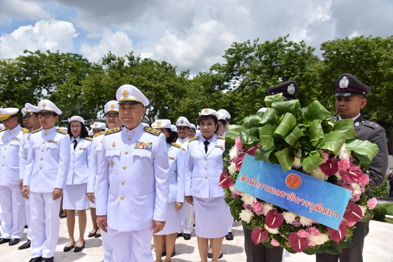 พร้อมด้วยคณะผู้บริหารและข้าราชการสำนักงานเลขาธิการวุฒิสภา วางพวงมาลาถวายราชสักการะ