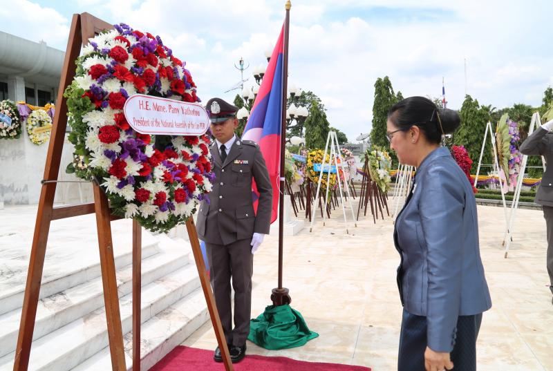 ประธานสภาแห่งชาติ สาธารณรัฐประชาธิปไตยประชาชนลาว วางพวงมาลา ถวายราชสักการะพระบาทสมเด็จพระปกเกล้าเจ้าอยู่หัว