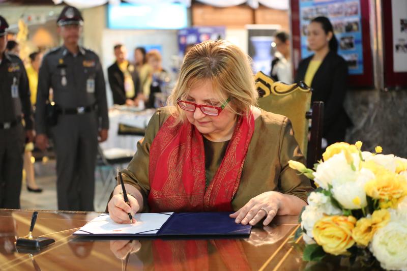 บดินทรเทพยวรางกูร จากนั้น เอกอัครราชทูตสาธารณรัฐตุรกีประจำประเทศไทย ได้ลงนามในสมุดถวายพระพร