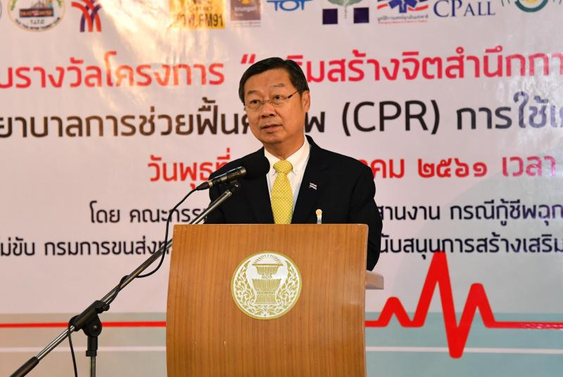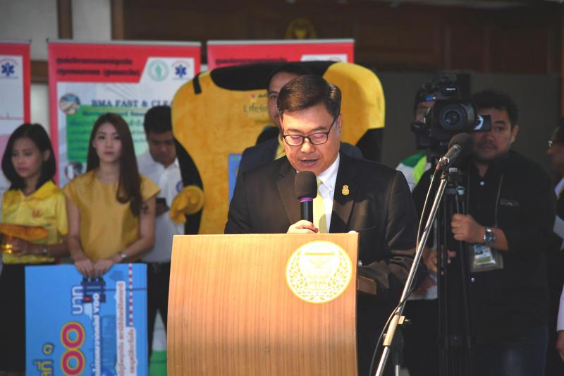 และกล่าวเปิดอบรมปฐมพยาบาลการช่วยฟืนคืนชีพ (CPR) และการใช้เครื่องกระตุ้นหัวใจไฟฟ้าชนิดอัตโนมัติ