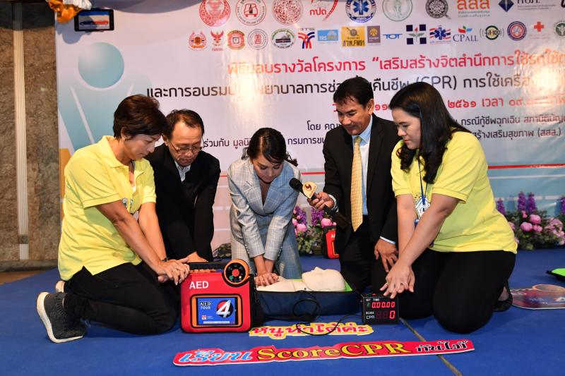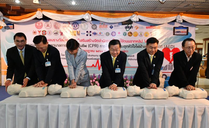 พิธีมอบรางวัลในโครงการ “เสริมสร้างจิตสำนึกการใช้รถใช้ถนนจากคลิป VDO” และการอบรมปฐมพยาบาลการช่วยฟื้นคืนชีพ (CPR) การใช้เครื่องกระตุกหัวใจไฟฟ้าชนิดอัตโนมัติ (AED)