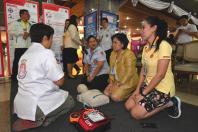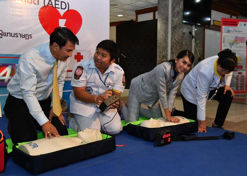 การใช้เครื่องกระตุกหัวใจไฟฟ้าชนิดอัตโนมัติ (AED) โดยมีนายคุณวุฒิ ตันตระกูล รองเลขาธิการสภาผู้แทนราษฎร