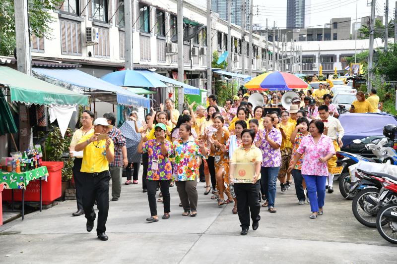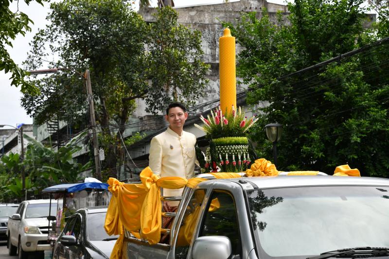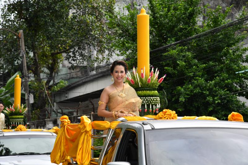 ร่วมขบวนแห่เทียนพรรษาและผ้าอาบน้ำฝนโดยพร้อมเพรียงกัน