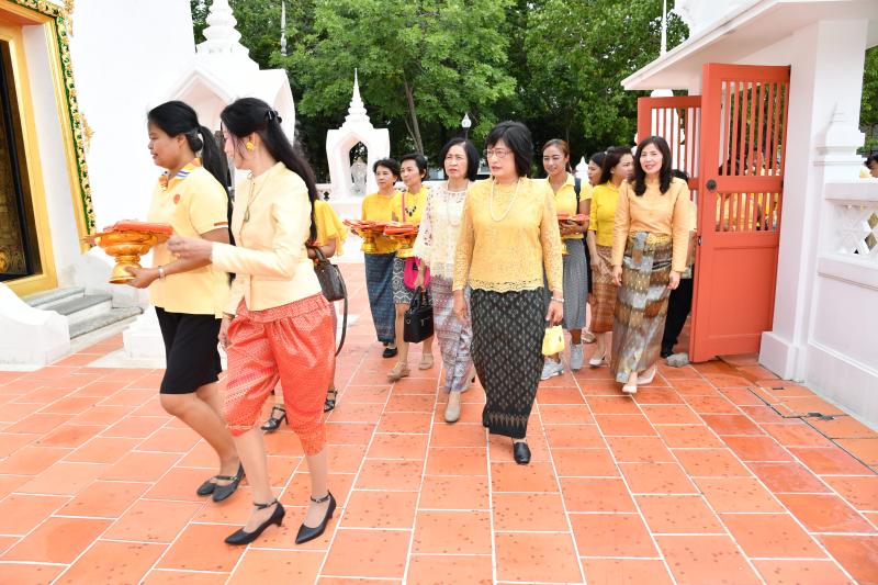 เทียนพรรษาและผ้าอาบน้ำฝน จากนั้นถวายภัตราหารเพลแด่พระภิกษุสงฆ์ และสามเณรจำนวน ๔๙ รูป เสร็จแล้ว