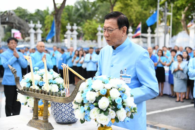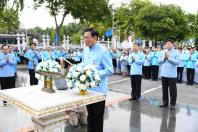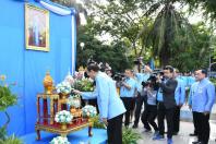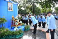ได้จุดธูปเทียนบูชาพระสยามเทวาธิราช พระเสื้อเมือง พระทรงเมือง และพระภูมิเจ้าที่ พร้อมถวายพวงมาลัย