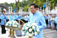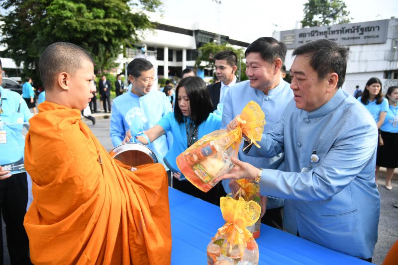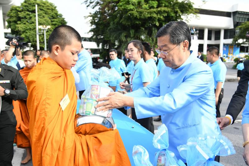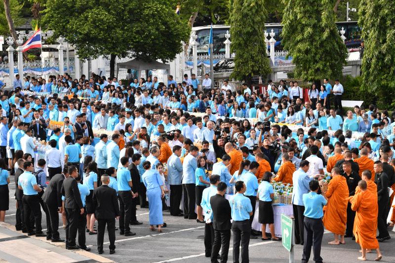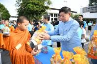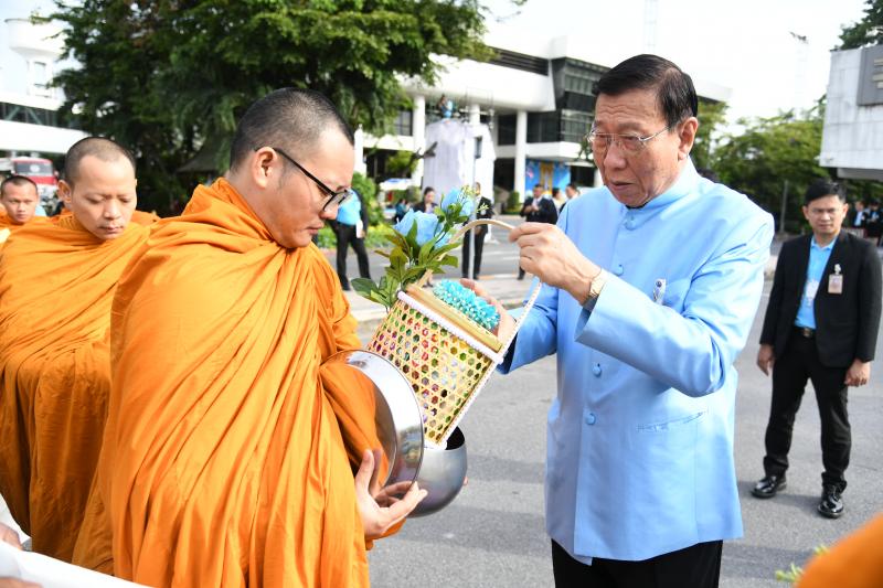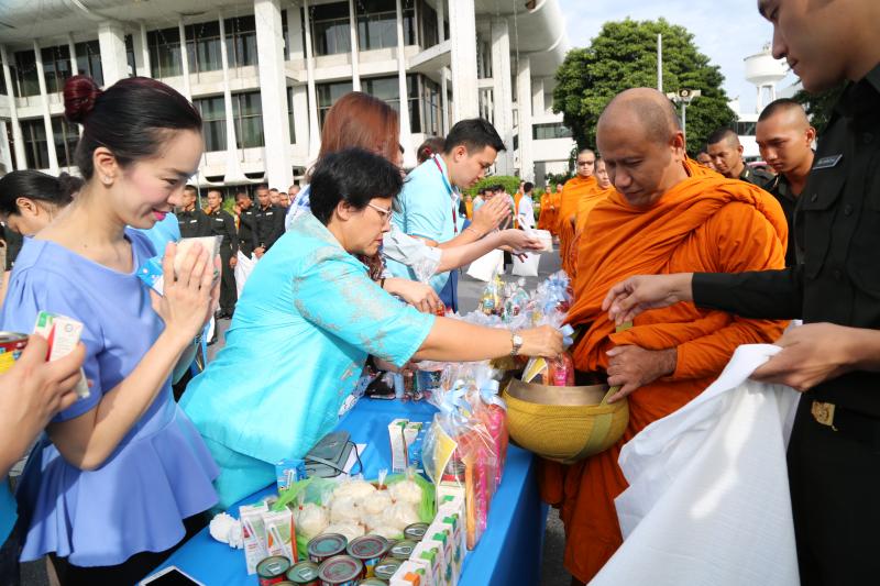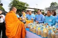 ตักบาตรพระสงฆ์ จำนวน ๘๗ รูป ร่วมกับสมาชิกสภานิติบัญญัติแห่งชาติ ผู้บริหารข้าราชการ ลูกจ้าง และ