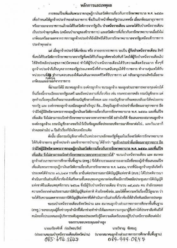 เอกสารหลักฐานสนับสนุนแก้ไขเพิ่มเติมพระราชกฤษฎีกาเงินสวัสดิการเกี่ยวกับการรักษาพยาบาล