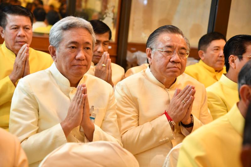 ในพิธีถวายภัตตาหารเช้า ร่วมกับสมาชิกสภานิติบัญญัติแห่งชาติในพิธีบำเพ็ญกุศลเพื่อถวายเป็น