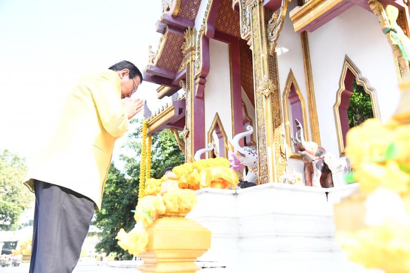 พระทรงเมือง และพระภูมิเจ้าที่ พร้อมถวายพวงมาลัย ณ บริเวณด้านหน้าพระสยามเทวาธิราช โดยมี
