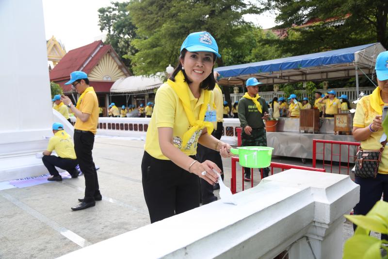 ๑. ทาสีรั้วกำแพงวัด กำแพงแก้ว ฐานพระอุโบสถ และขอบทางเข้าวัด