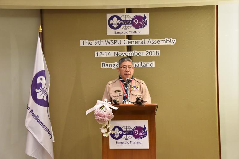 นายธำรง ทัศนาญชลี ประธานสมัชชาใหญ่สหภาพลูกเสือรัฐสภาโลก แถลงข่าวสรุปผลการประชุมสมัชชาใหญ่