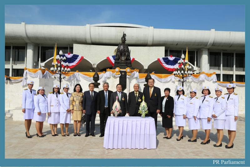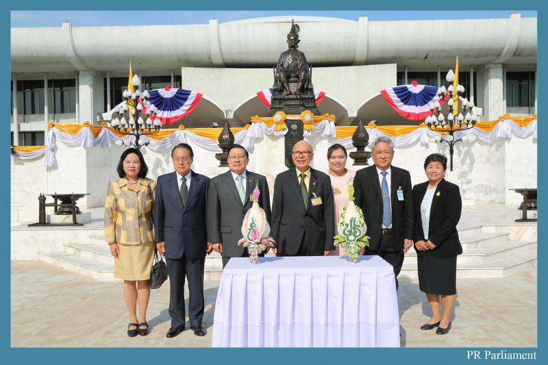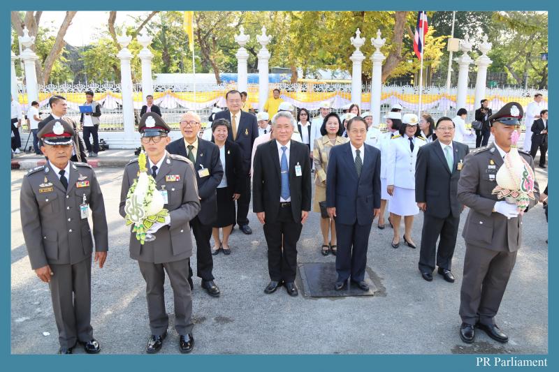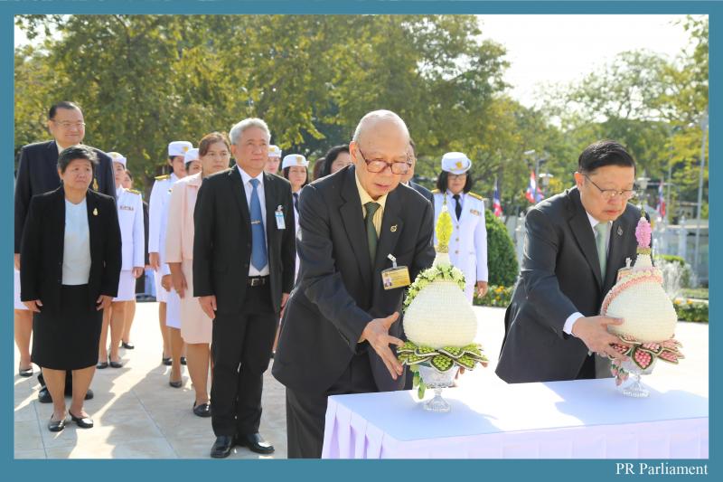 นำพานประดับพุ่มดอกไม้ถวายบังคมในนาม มูลนิธิพระบรมราชานุสรณ์พระบาทสมเด็จพระปกเกล้าฯ