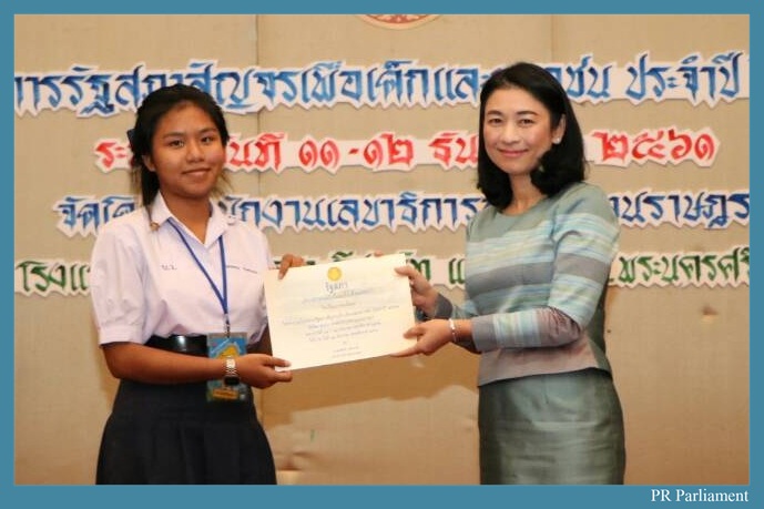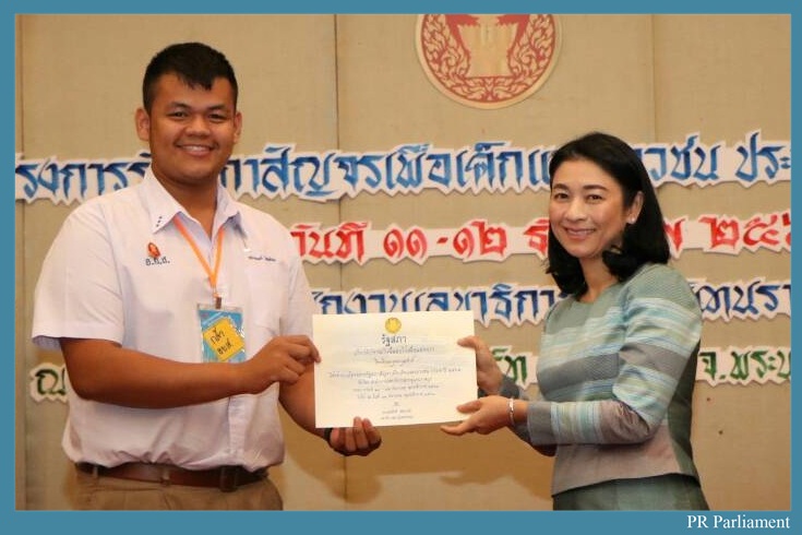 เกียรติบัตรให้กับผู้แทนโรงเรียนที่เข้าร่วมในโครงการรัฐสภาสัญจรเพื่อเด็กและเยาวชน ประจำปีงบประมาณ