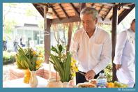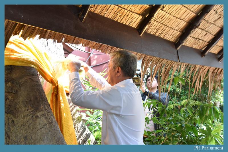 ถวายพวงมาลัย ผูกผ้าตาดทองและผูกผ้าสามสีที่ต้นงิ้วผู้บริหารสำนักงานฯ ถวายพวงมาลัย