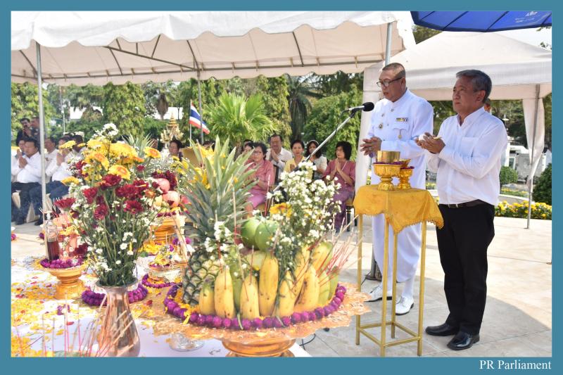 จากนั้น เลขาธิการสภาผู้แทนราษฎร พร้อมด้วยผู้บริหาร สำนักงานฯ จุดธูปเทียนบูชา