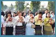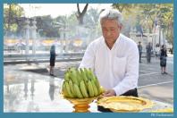 จุดธูปเทียน เครื่องทองน้อย เปิดกรวยดอกไม้ และถวายคำนับ