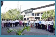 และลูกจ้างสำนักงานเลขาธิการสภาผู้แทนราษฎร เข้าร่วมพิธีอย่างพร้อมเพรียง