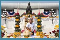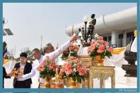 และหลั่งน้ำสังข์ และเจิมพระบาทรูปหล่อจำลอง รัชกาลที่ ๗ ถวายพวงมาลัย โปรยดอกไม้