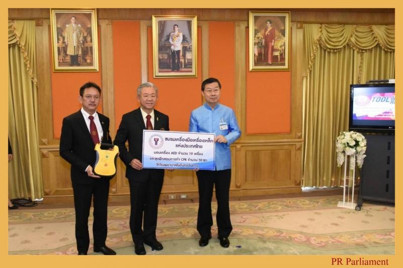 วันพฤหัสบดีที่ ๓๑ มกราคม ๒๕๖๒ เวลา ๑๐.๑๐ นาฬิกา ณ ห้องรับรองพิเศษ ชั้น ๒ อาคารรัฐสภา ๒ คณะกรรมการบูรณาการประสานงาน กรณีกู้ชีพฉุกเฉิน สภานิติบัญญัติแห่งชาติ ร่วมกับชมรมเครื่องมือเครื่องเหล็กแห่งประเทศไทย จัดพิธีมอบโล่เกียรติคุณให้กับ "ผู้สนับสนุนและ ขับเคลื่อนกิจกรรมกู้ชีพฉุกเฉิน" จำนวน ๒๑ คน พร้อมทั้งมอบเครื่อง AED และชุดฝึกสอน CPR ให้กับผู้แทนโรงพยาบาล จำนวน ๑๑ แห่ง โดยมี นายสุรชัย เลี้ยงบุญเลิศชัย รองประธานสภานิติบัญญัติ แห่งชาติ คนที่หนึ่ง ในฐานะประธานคณะกรรมการฯ เป็นประธานในพิธี และนายเล็กพรมุกดามณี ประธานชมรมเครื่องมือเครื่องเหล็กแห่งประเทศไทย กล่าวรายงานวัตถุประสงค์การจัดกิจกรรม สำหรับโรงพยาบาลที่ได้รับเครื่อง AED และชุดฝึกสอน CPR จำนวน ๑๑ แห่ง ประกอบด้วย ๔ ภาค ได้แก่ ภาคเหนือ - โรงพยาบาลส่งเสริมสุขภาพตำบลบ้านช่อแล จ.เชียงใหม่ - โรงพยาบาลทุ่งช้าง จ.น่าน โรงพยาบาลตรอน จ.อุตรดิตถ์ ภาคใต้ - โรงพยาบาลส่งเสริมสุขภาพตำบลบ้านหาร จ.สงขลา