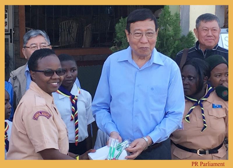 ของนักเรียนลูกเสือจากโรงเรียนต่าง ๆ  ซึ่งประธานสภานิติบัญญัติแห่งชาติ ในฐานะ