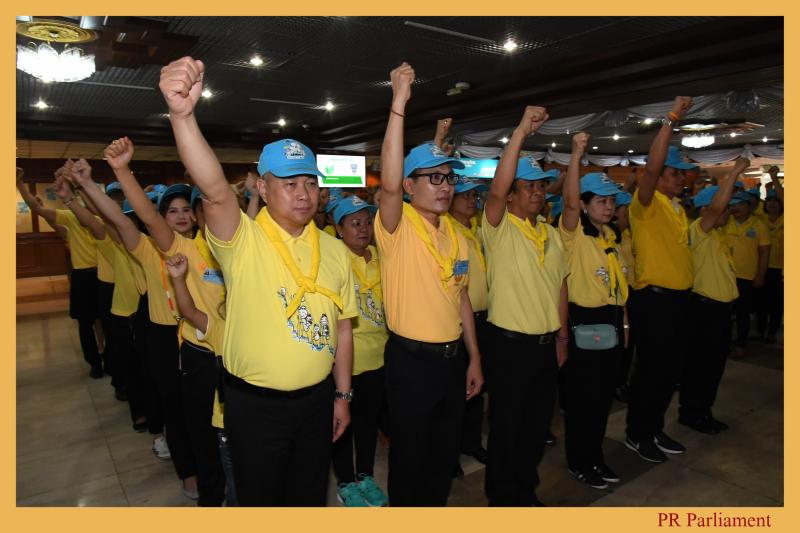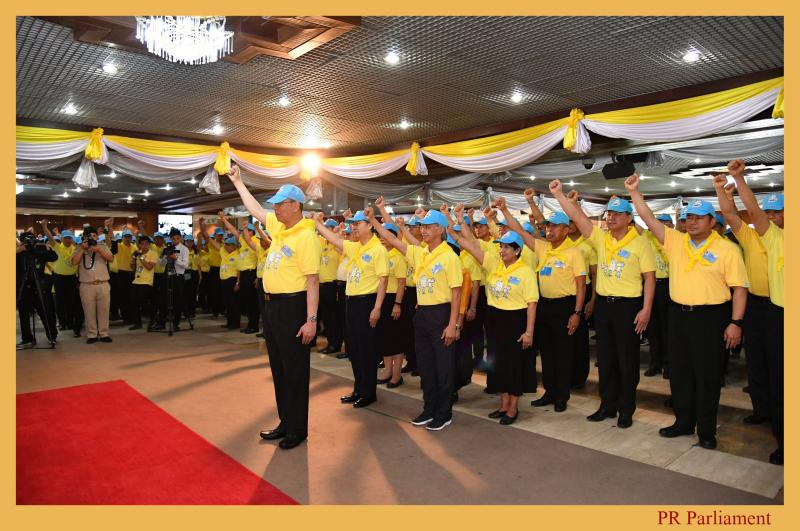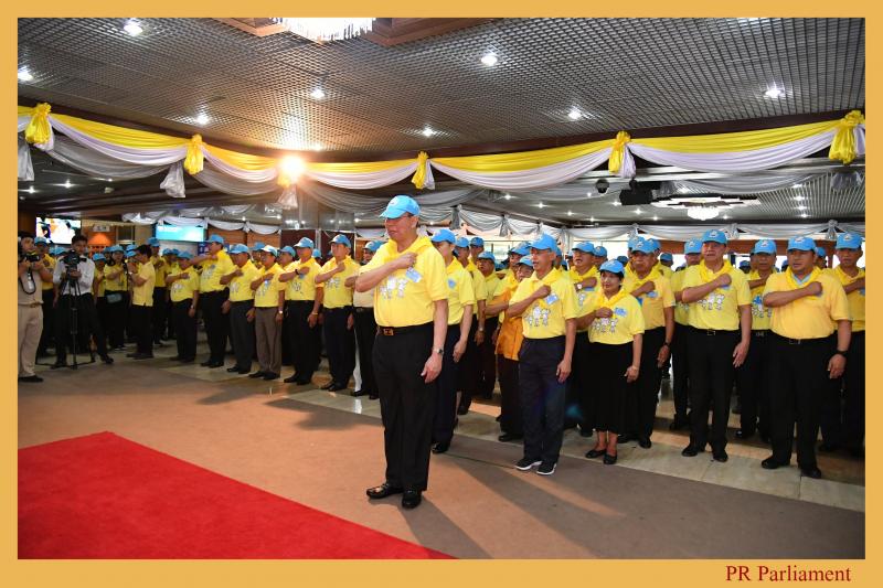 จากนั้นประธานสภานิติบัญญัติแห่งชาตินำคณะจิตอาสาถวายความเคารพ พระฉายาลักษณ์สมเด็จพระเจ้าอยู่หัวโดยการวันทยหัตถ์และกล่าวคำ ปฏิญาณตน เราทำความดี ด้วยหัวใจ