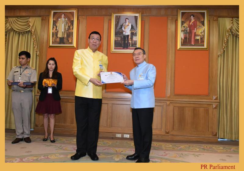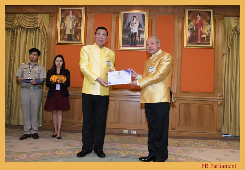 วันพฤหัสบดีที่ ๑๔ มีนาคม ๒๕๖๒ เวลา ๑๓.๓๐ น. ณ ห้องรับรองพิเศษ ชั้น ๒ อาคารรัฐสภา ๒ ศาสตราจารย์พิเศษพรเพชร วิชิตชลชัย ประธานสภานิติบัญญัติแห่งชาติ เป็นประธานในพิธีมอบใบประกาศเกียรติคุณ