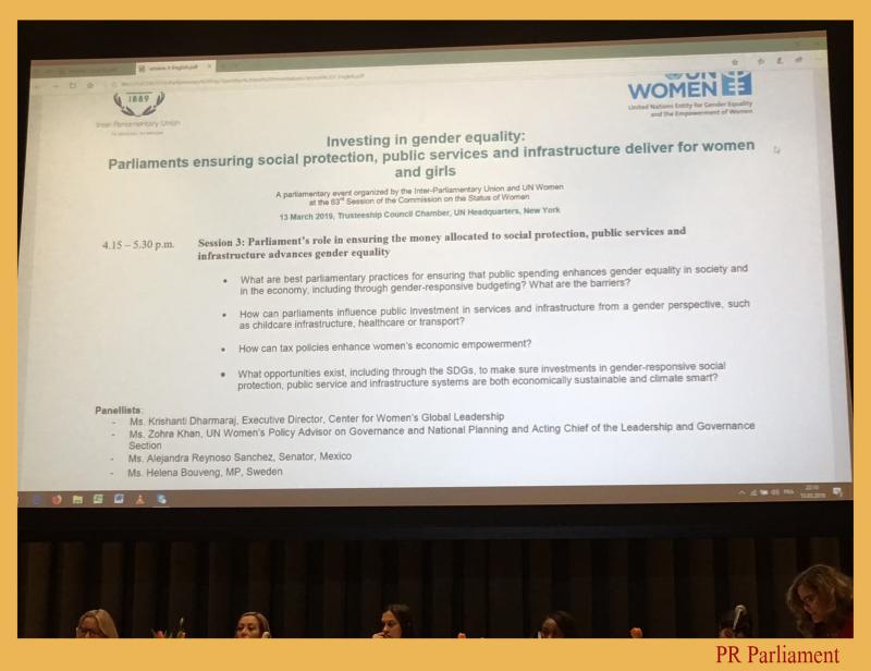 ว่าด้วยสถานภาพสตรี สมัยที่ ๖๓ ซึ่งเป็นการอภิปรายในหัวข้อ “บทบาทของรัฐสภาในการสร้างหลักประกันถึงเงินที่จะ