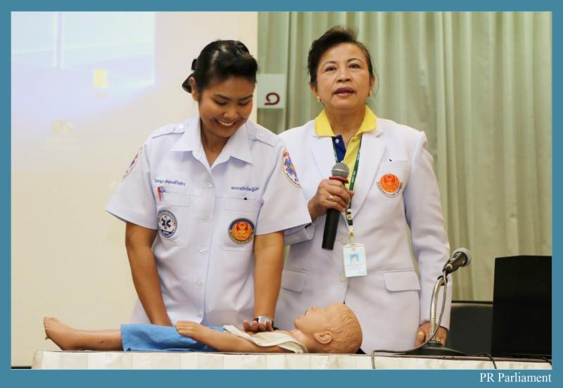นำคณะข้าราชการสำนักบริการทางการแพทย์ประจำรัฐสภา สาธิตการกู้ชีพพื้นฐาน (CPR)