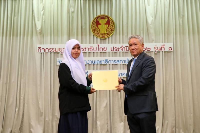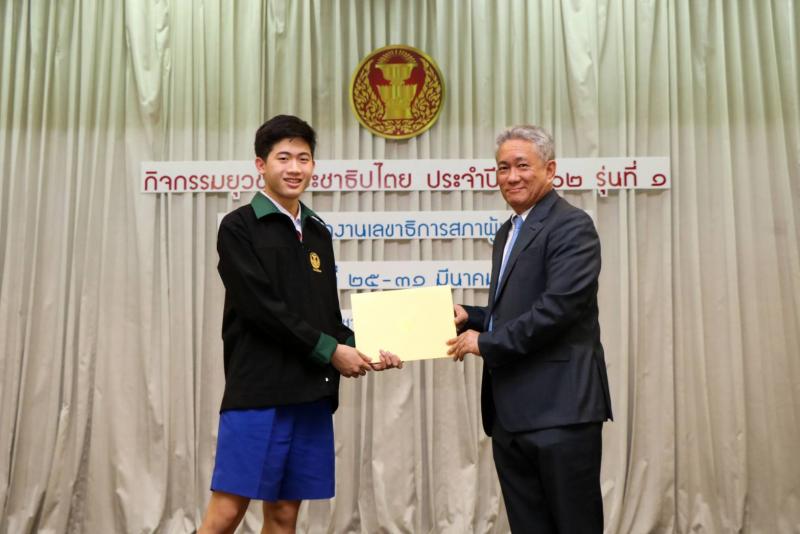 เลขาธิการสภาผู้แทนราษฎร เป็นประธานในพิธีปิดกิจกรรมยุวชนประชาธิปไตย รุ่นที่ ๑/๒๕๖๒ และมอบเกียรติบัตร พร้อมเข็มยุวชนประชาธิปไตย