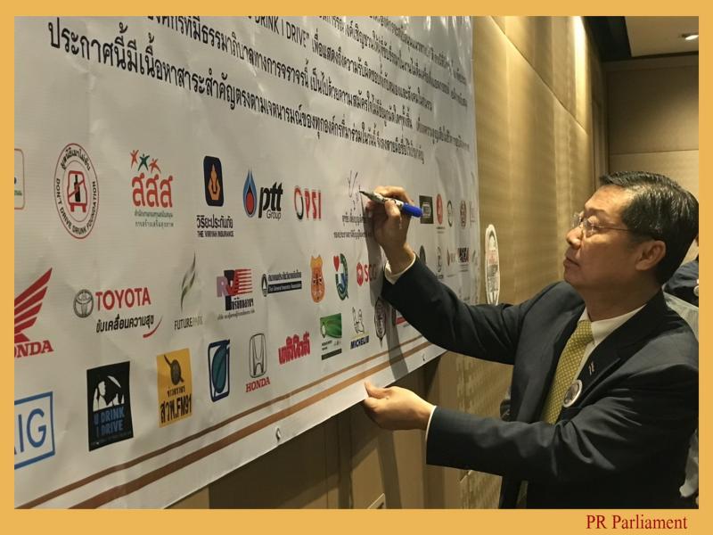 คนที่หนึ่ง  พร้อมด้วยนายดำรง พุฒตาล ประธานมูลนิธิเมาไม่ขับ ร่วมเป็นประธานในพิธีลงนาม