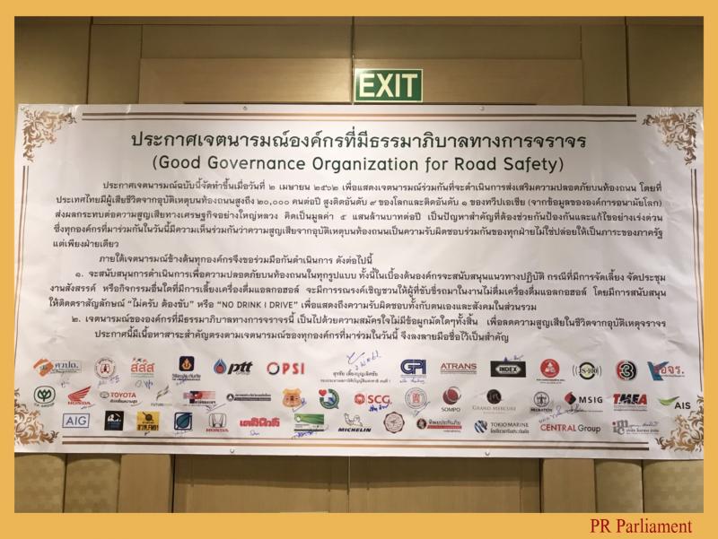 ทางการจราจร และได้มาแสดงเจตนารมณ์ร่วมกันในวันนี้มากกว่า ๓๐ องค์กร ซึ่งเป็นหน่วยงาน